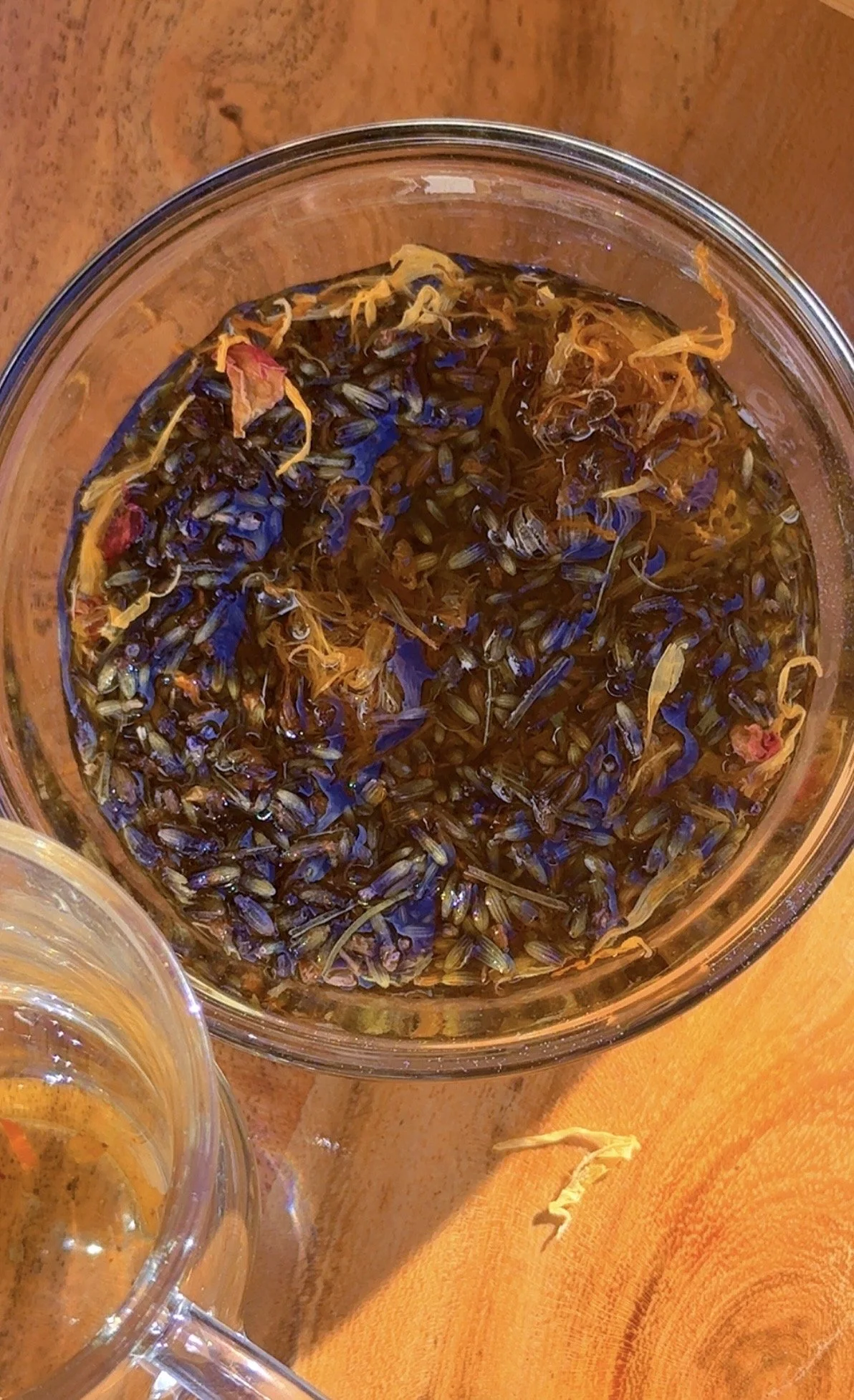 After preparation, the herbs are set into a slow infusion. We let time do the work, allowing the plants to open and release their properties gently, without heat or pressure.